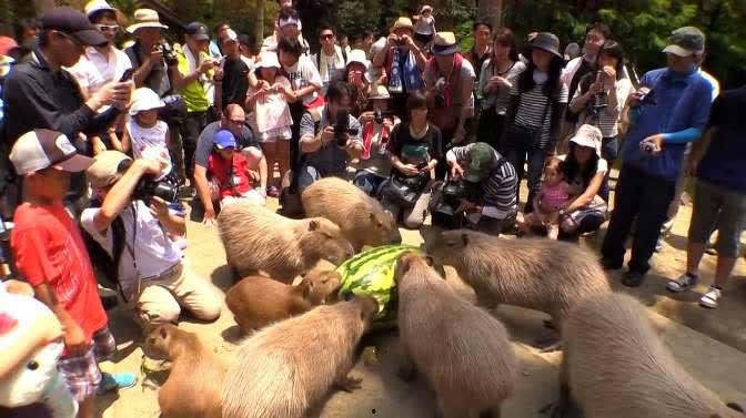 最让人惊讶的是,有些水豚竟然能一边吃瓜一边玩耍,简直就像是在开派对一样。看来,这些小家伙们不仅可爱,还很有趣呢!