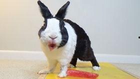 2. 啃瓜皮:你知道吗,兔子们不仅吃西瓜肉,还会啃西瓜皮。这是因为西瓜皮富含膳食纤维,有助于兔子消化。